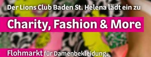 Der Lionsclub Baden St.Helena lädt ein zu einem besonderen Flohmarkt mit ausgewählter Damenbekleidung, Modeschmuck, Handtaschen, Hüten, Modeschau, Buffet und mehr…Unsere Spenden kommen ausschließlich bedürftigen Familien und Personen in unserer Region zugute, da besonders auch der Schulanfang viele Familien zusätzlich belastet.